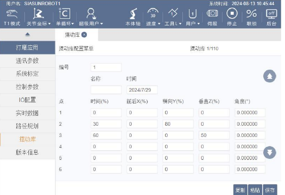 | 机器人 | SIASUN SR25A-35/1.80 | 机器人本体及M6控制柜(集成式) 与标准M6控制柜的区别: 1. 内置力控控制器; 2. 内置主轴变频器; 3. 内置自动换刀阀岛; 4. 内置连接器面板 | 1 |