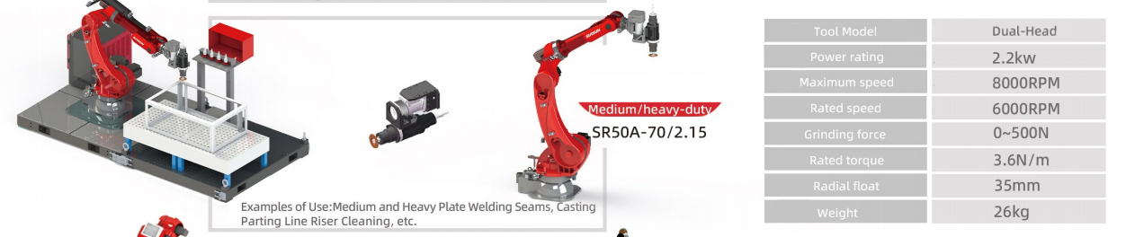 | 机器人 | SIASUN SR50A-70/2.15 | 机器人本体及M6控制柜(集成式)与 标准M6控制柜的区别: 1. 内置力控控制器; 2. 内置主轴变频器; 3. 内置自动换刀阀岛; 4. 内置制动电阻(与变频器配套使用)。 | 1 |