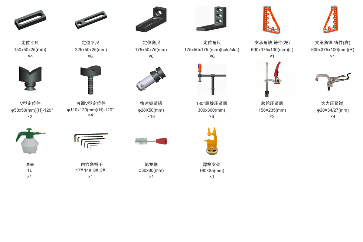 | 长度(mm) | 宽度(mm) | 高度(mm) | 每条腿的负载(KG) | 微调高度(mm) |